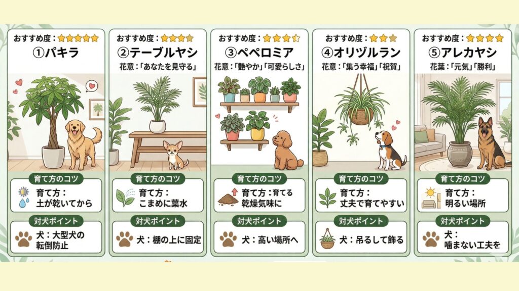 この記事では、数ある観葉植物の中から「犬にとって本当に安全な5種」を厳選し、それぞれの花言葉やおすすめ度、価格の目安を解説します。