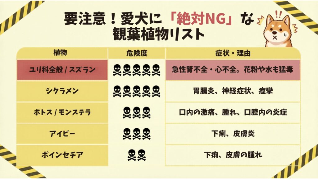 観葉植物には犬を飼っている人が絶対に置いてはいけない危険な植物があります。